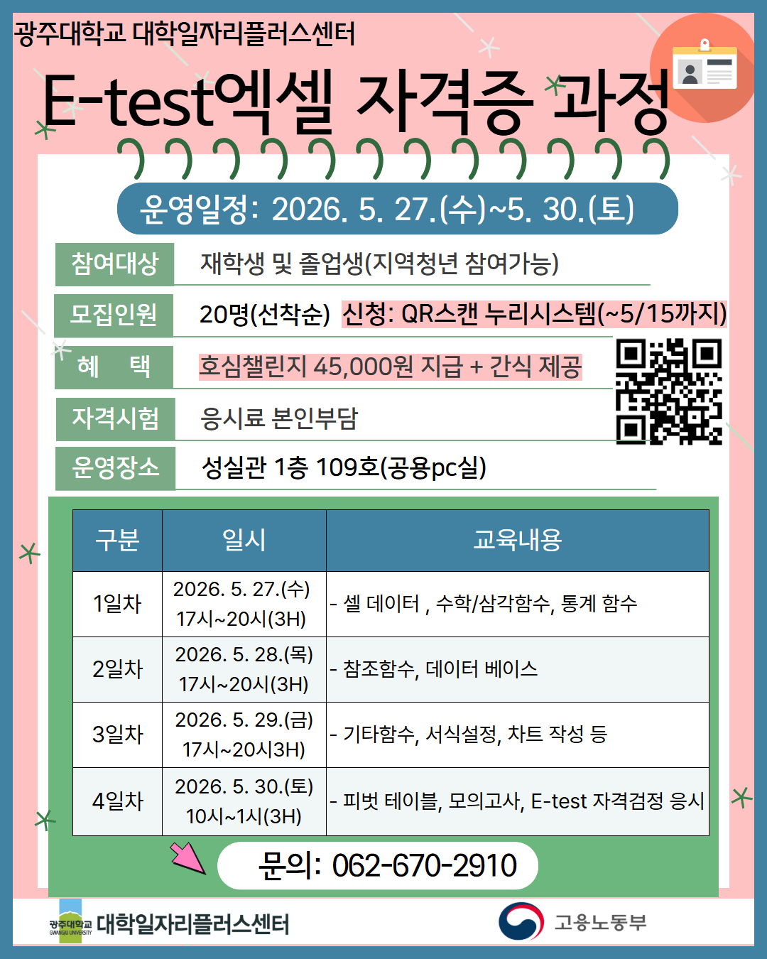 공지[대학일자리플러스센터] ‘E-test엑셀 자격증 과정 ’ 참여자 모집